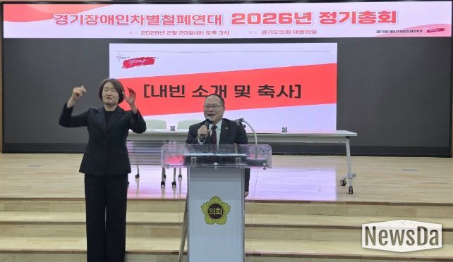 뉴스다 최광묵 기자 | 경기도의회 보건복지위원회 박재용 의원(더불어민주당, 비례)은 20일 경기도의회 대회의실에서 열린 ‘경기장애인차별철폐연대 2026년 정기총회’에 참석해 축사를 통해 장애인 정책의 기본 방향으로 “시혜가 아닌 권리”라는 원칙을 강조했다.