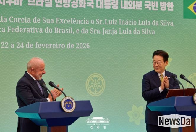 뉴스다 최광묵 기자 | 이재명 대통령과 루이스 이나시우 룰라 다시우바 브라질 대통령은 23일 정상회담을 갖고, 양국 관계를 '전략적 동반자 관계'로 격상시키기로 하고, 이를 이행하기 위한 '한-브라질 4개년 행동계획'을 채택했다.