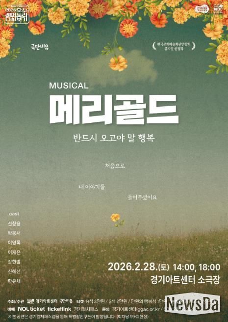 뉴스다 최광묵 기자 | 경기도와 경기아트센터는 오는 28일 오후 2시와 6시 경기아트센터 소극장에서 뮤지컬 ‘메리골드’ 공연을 선보인다.