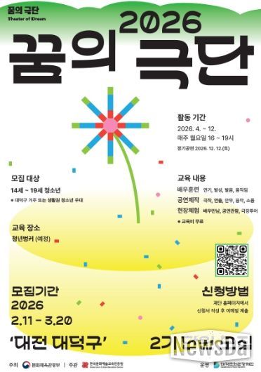 뉴스다 최광묵 기자 | 대전 대덕구는 대덕문화관광재단이 대덕구 거주 청소년을 대상으로 ‘2026 꿈의 극단 - 대전 대덕구’ 2기 청소년 단원을 모집한다고 밝혔다.
