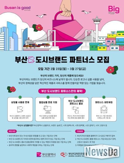 뉴스다 최광묵 기자 | 부산시와 (재)부산디자인진흥원은 23일부터 3월 27일까지 부산 도시브랜드를 활용한 상품과 콘텐츠를 함께 만들어갈 '2026 부산 도시브랜드 파트너스' 참여기업을 모집한다고 밝혔다.