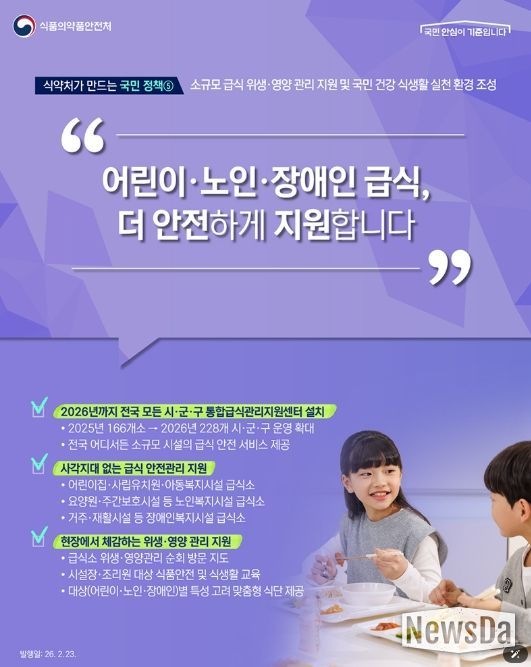 뉴스다 최광묵 기자 | 식약처가 만드는 국민 정책 - 소규모 급식 위생·영양 관리 지원 및 국민 건강 식생활 실천 환경 조성