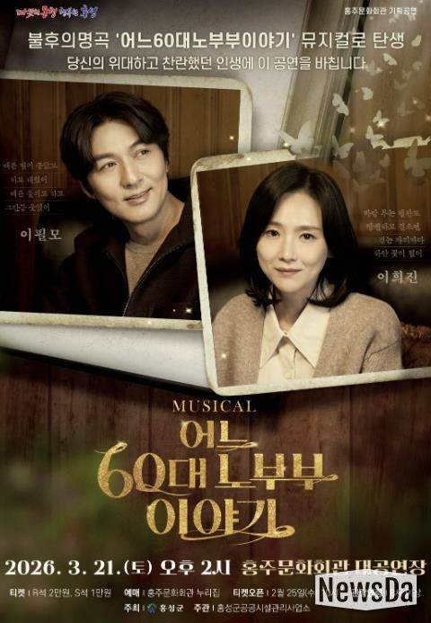 뉴스다 최광묵 기자 | 홍성군 홍주문화회관은 내달 21일 오후 2시, 중장년층을 넘어 모든 세대가 공감할 수 있는 따뜻한 가족 이야기를 그려낸 뮤지컬 ‘어느 60대 노부부 이야기’를 무대에 올린다.