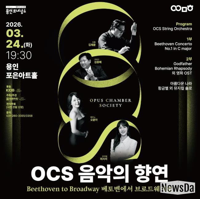 뉴스다 최광묵 기자 | 용인문화재단은 오는 3월 24일 용인포은아트홀에서 오퍼스 체임버 소사이어티(Opus Chamber Society, 이하 OCS)와 공동으로 'OCS 음악의 향연, Beethoven to Broadway' 공연을 개최한다.