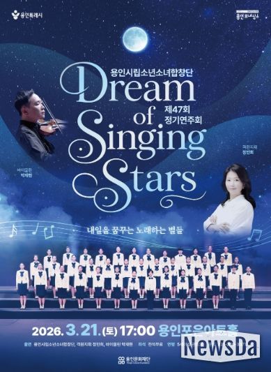 뉴스다 최광묵 기자 | 용인문화재단은 오는 3월 21일 용인포은아트홀에서 용인시립소년소녀합창단 제47회 정기연주회'Dream of Singing Stars'를 개최한다고 밝혔다.