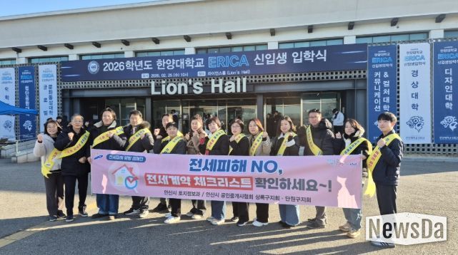 뉴스다 최광묵 기자 | 안산시는 지난 25일 한양대학교 에리카캠퍼스에서 안산시 상록·단원 공인중개사협회와 민·관 합동으로 ‘전세 피해 예방의 날 캠페인’을 진행했다고 26일 밝혔다.