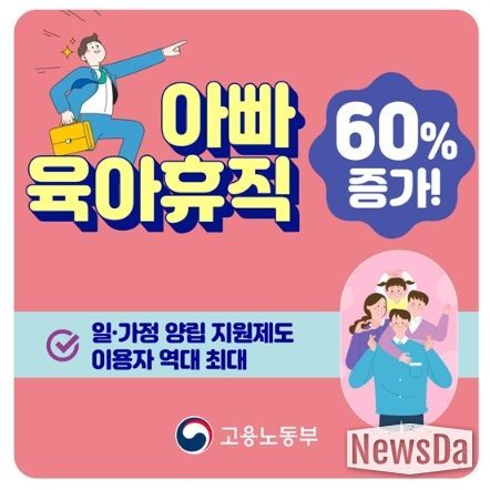 뉴스다 최광묵 기자 | 아빠 육아휴직 60% 증가!
