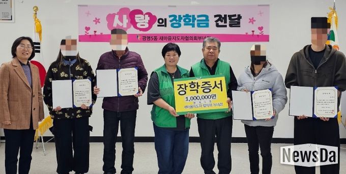 뉴스다 최광묵 기자 | 광명시 광명5동 새마을지도자협의회와 새마을부녀회는 지난 25일 도움이 필요한 가정의 대학생 4명에게 각 100만 원씩 총 400만 원의 장학금을 전달했다.