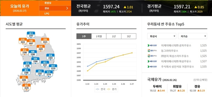 ▲화성시 휘발류 제일 싼 주유소 1619원 자유에너지(주)행운주유소