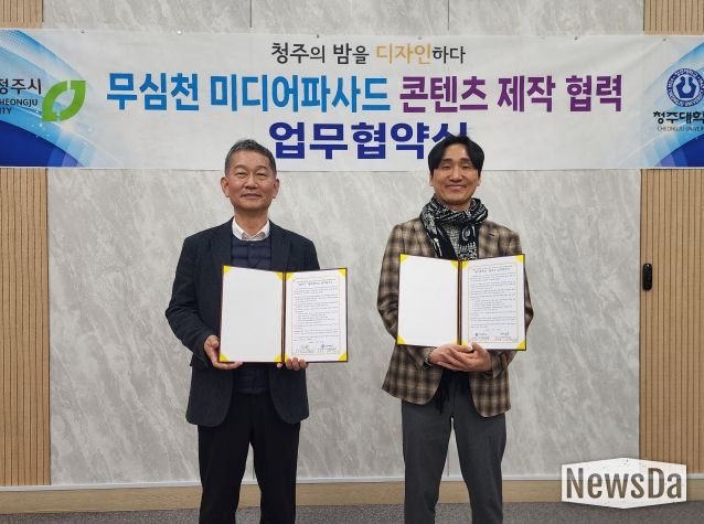 뉴스다 최광묵 기자 | 청주시는 27일 청주대학교와 청주시 교량(서문교·청남교) 미디어파사드를 활용한 공공 미디어아트 콘텐츠 제작을 위해 업무협약(MOU)을 체결했다.