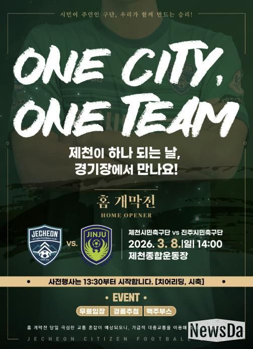 뉴스다 최광묵 기자 | 제천시민축구단이 오는 3월 8일 오후 2시, 제천종합운동장에서 역사적인 홈 개막전을 연다.