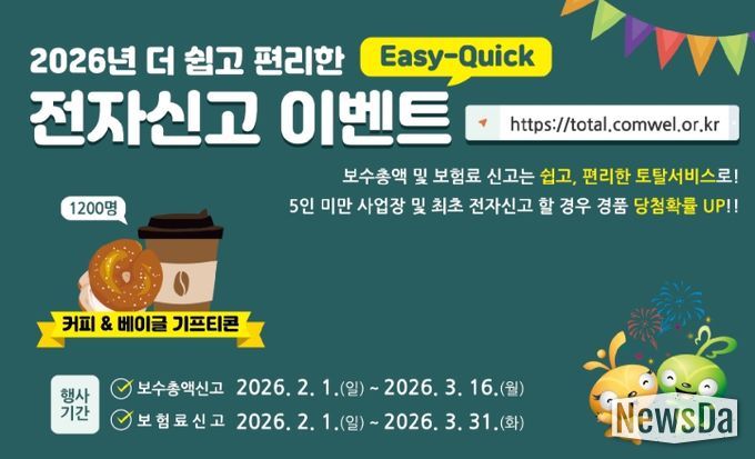 뉴스다 최광묵 기자 | 고용노동부 근로복지공단은 고용·산재보험 보수총액 신고 기간을 맞아 사업주의 기한 내 신고를 당부했다.