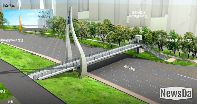 뉴스다 최광묵 기자 | 파주시는 한국토지주택공사(LH)가 제2자유로로 단절된 운정1ܨ지구 한울마을과 운정3지구 물향기마을을 연결하는 보도육교 설치 공사를 이달부터 본격 착공한다고 밝혔다.