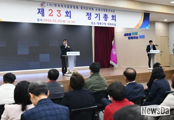 뉴스다 최광묵 기자 | 장수석 영통구청장은 지난 3일 구청 대회의실에서 열린 ‘한국외식업중앙회 경기도지회 수원시 영통구지부 제23회 정기총회’에 참석해 외식업 종사자들을 격려하고 현장의 목소리를 경청했다. 행사에는 지역 외식업 관계자 등 80여 명이 참석해 상호 교류와 화합의 시간을 가졌다.
