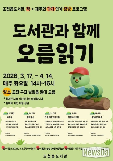 뉴스다 최광묵 기자 | 제주시 조천읍도서관은 제주의 가치가 담긴 독서문화 탐방 프로그램 ‘도서관과 함께 오름 읽기’를 운영한다.