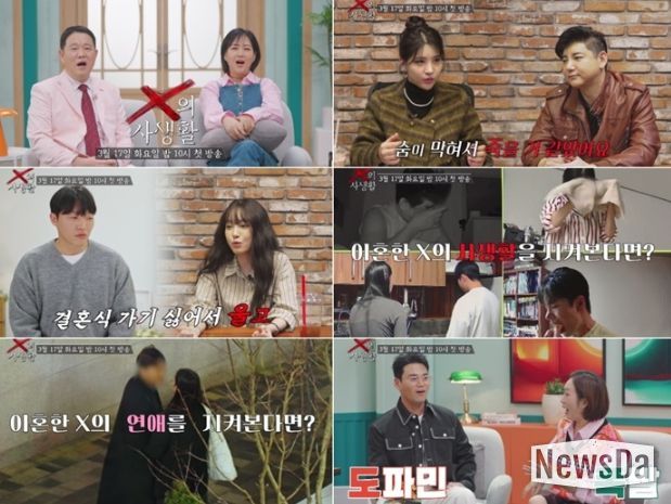 MC로 나선 김구라와 장윤정의 모습도 담겼다. 장윤정은 “(이혼한 X의) 일상은 물론이고 새로운 이성과의 만남까지도 지켜볼 수 있다”는 말과 함께 티저 속 장면을 지켜보며 현실적인 조언과 깊이 있는 공감을 더한다. 특히 장윤정은 이혼한 부부의 사연에 “복잡하다, 복잡해”라며 감정이입하기도 한다. 여기에 패널로 합류한 천록담, 정경미 역시 각기 다른 시선으로 상황을 바라보며 프로그램의 입체감을 더한다.