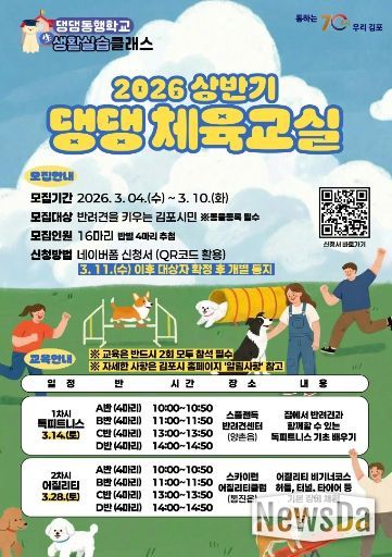 뉴스다 최광묵 기자 | 김포시는 2026년 반려문화교육인 ‘상반기 댕댕 체육교실’의 참여자를 오는 3월 10일까지 모집한다고 밝혔다.