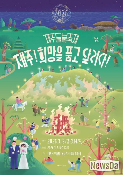 뉴스다 최광묵 기자 | 제주도는 제주시가 3월 9일부터 14일까지 ‘제주, 희망을 품고 달리다!’를 주제로 애월읍 새별오름 일대에서 ‘2026 제주들불축제’를 개최한다고 전했다.