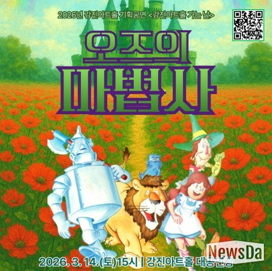 뉴스다 최광묵 기자 | 강진군 강진아트홀이 오는 14일 오후 3시, 3대가 함께 즐기는 공연 ‘오즈의마법사’를 상연한다.