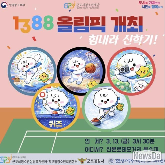 뉴스다 최광묵 기자 | 군포시청소년재단 군포시청소년상담복지센터는 오는 3월 13일 오후 3시 30분, 산본로데오거리 분수대에서 1388청소년지원단, 청소년 관계기관과 함께 직접 청소년을 만나는 연합아웃리치 활동을 진행한다.