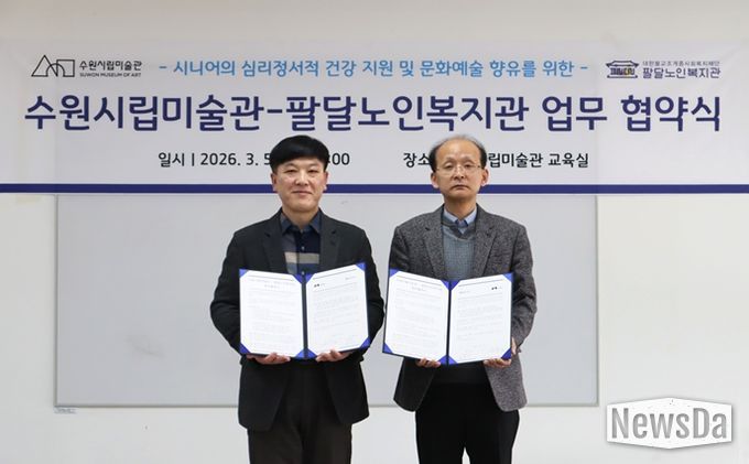 뉴스다 최광묵 기자 | 경기도 수원시립미술관과 수원시 팔달노인복지관은 5일 관내 시니어의 문화예술 향유 활성화를 위한 업무협약을 체결했다.