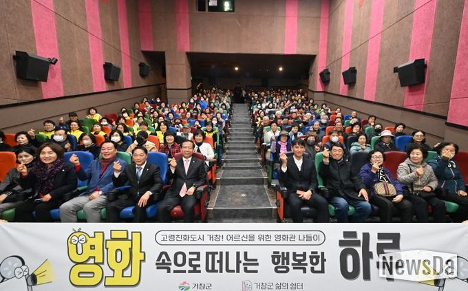 뉴스다 최광묵 기자 | 거창군은 지난 5일, 롯데시네마 거창에서 거창군 삶의쉼터(권한대행 김용종) 주관으로 관내 65세 이상 어르신 160여 여명이 참석한 가운데 ‘어르신을 위한 영화관 나들이 사업’ 첫 상영회를 성황리에 개최했다.