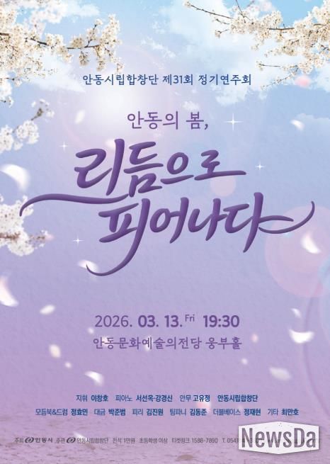뉴스다 최광묵 기자 | 안동시를 대표하는 전문예술단체인 안동시립합창단이 오는 3월 13일 오후 7시 30분 안동문화예술의전당 웅부홀에서 제31회 정기연주회 ‘안동의 봄, 리듬으로 피어나다’를 개최한다.