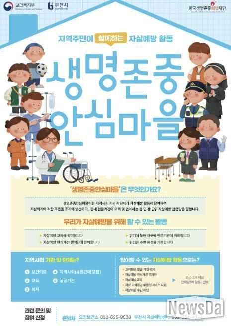 뉴스다 최광묵 기자 | 부천시는 지역사회 중심의 생명안전망 구축을 위해 ‘생명존중 안심마을’을 기존 8개 동에서 6개 동을 추가해 확대 조성한다.