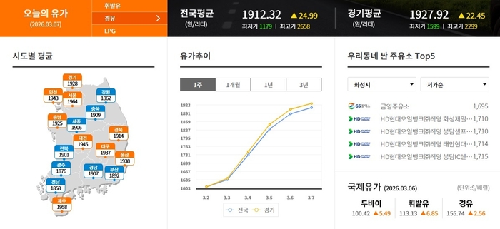 ▲화성시 휘발류 제일 싼 주유소 1760원 HD현대오일뱅크(주)직영 봉담셀프