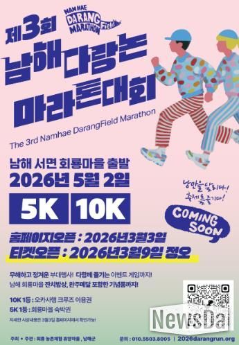 이정만 회룡농촌체험휴양마을 위원장은 “이번 다랑논 마라톤은 지역 주민들이 함께 준비한 마을 축제로, 스포츠 대회 이상으로 남해의 낭만과 감성을 경험할 수 있는 소중한 시간이 되길 바란다”고 밝혔다.