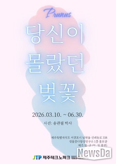제주테크노파크(원장 지영흔, 제주TP) 청정바이오사업본부 생물종다양성연구소는 오는 6월 30일까지 서귀포시 남원읍 생물종다양성연구소 1층 홍보관에서 제주 자생 벚나무의 생태적 가치를 조명하는 ‘당신이 몰랐던 벚꽃’ 사진전을 개최한다고 10일 밝혔다.