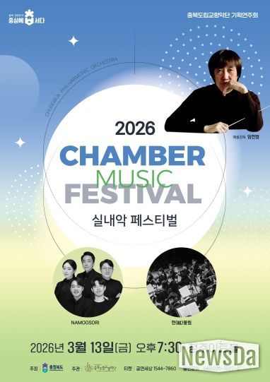 뉴스다 최광묵 기자 | 충북도립교향악단은 오는 3월 13일 오후 7시 30분, 청주아트홀에서 기획연주회 ‘2026 실내악페스티벌(Chamber Music Festival)’을 개최한다.