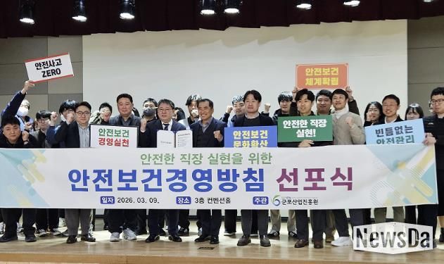 뉴스다 최광묵 기자 | 군포산업진흥원은 지난 9일 청사 3층 컨벤션홀에서 기관 임직원이 참석한 가운데 '2026년 안전보건경영 선포식'을 개최했다.