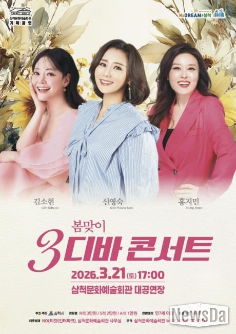 뉴스다 최광묵 기자 | 삼척시는 봄을 맞아 시민들에게 문화 향유 기회를 제공하기 위해 오는 3월 21일 오후 5시 삼척문화예술회관 대공연장에서 ‘봄맞이 3디바 콘서트’ 초청공연을 개최한다.