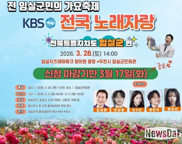 뉴스다 최광묵 기자 | 임실군이 오는 3월 28일 개최 예정인‘KBS 전국 노래자랑 임실군편’을 전 군민의 화합의 장이자 가요축제로 준비에 만전을 다하고 있다.