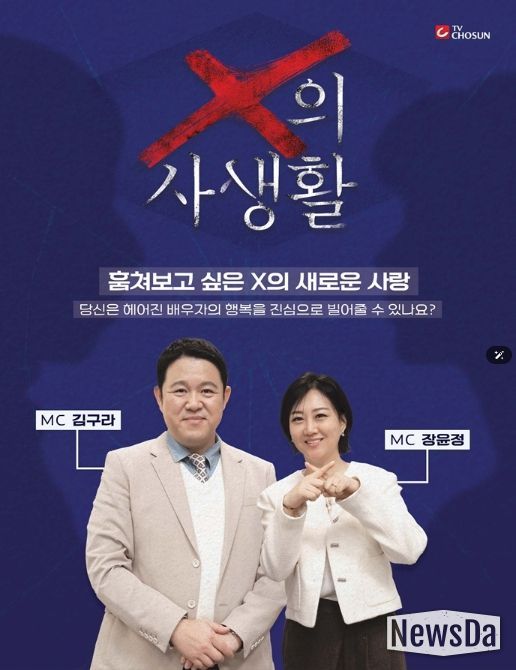 오는 3월 17일(화) 밤 10시 첫 방송되는 TV CHOSUN ‘X의 사생활’은 이혼한 전 배우자의 일상을 지켜보는 리얼 관찰 프로그램이다. 한때는 누구보다 가까웠지만 이제는 ‘남보다 못한 사이’가 된 두 사람이 각자의 삶을 살아가는 모습을 통해 관계가 끝난 뒤에도 남아 있는 감정과 변화의 과정을 담는다. 일명 ‘이혼 부부들의 입장 정리 리얼리티’로, MC 김구라와 장윤정을 중심으로 패널 천록담, 정경미가 합류해 환상의 라인업을 완성했다.