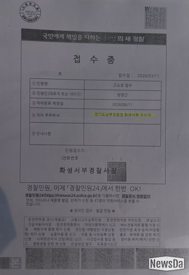 정명근 화성특례시장은 11일 최근 화성지역 한 인터넷 언론사의 금품수수 의혹 보도에 대해 명예훼손 등의 혐의로 화성서부서에 고소장을 제출했다.