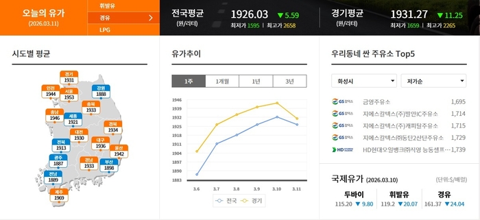 ▲화성시 경 유 제일 싼 주유소 1695원 금영주유소