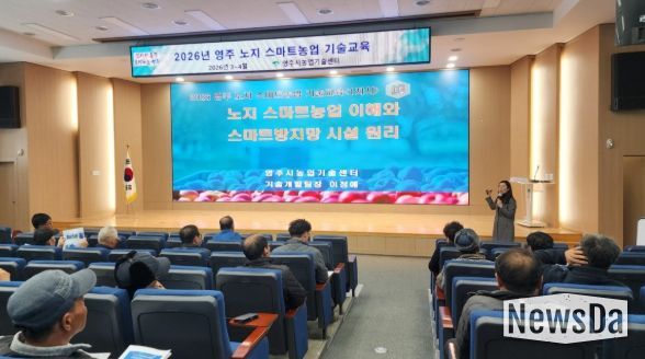 뉴스다 최광묵 기자 | 영주시는 지난 12일 농업기술센터 대교육관에서 ‘2026년 영주 노지 스마트농업 기술교육’ 개강식을 열고 본격적인 교육 운영에 들어갔다.