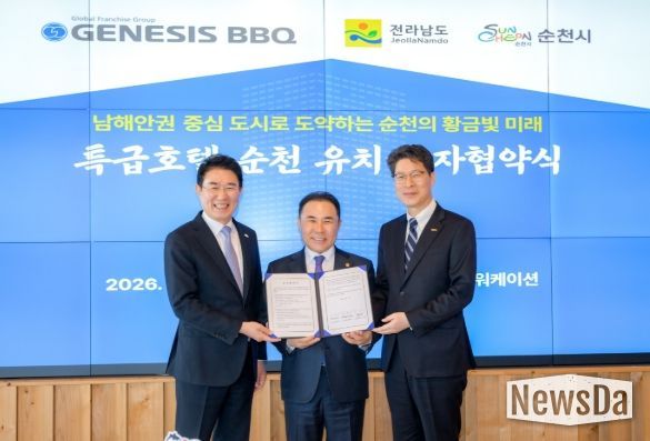 뉴스다 최광묵 기자 | 순천시는 13일 전라남도, 제너시스BBQ와 함께 정원워케이션센터에서 ‘특급호텔 건립 등을 위한 투자협약(MOU)’을 체결했다고 밝혔다.