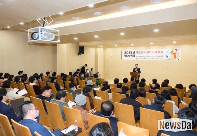 뉴스다 최광묵 기자 | (재)통영문화재단(이사장 천영기)은 지난 12일 통제영거리 역사홍보관 2층 시청각실에서‘2026년 대한민국 문화도시 통영’사업설명회를 성황리에 마무리했다고 밝혔다.