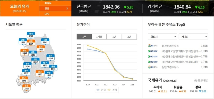 ▲화성시 휘발류 제일 싼 주유소 1750원HD현대오일뱅크(주)직영 화성제일
