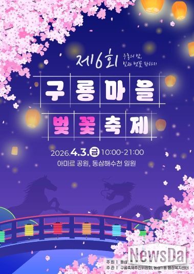 이희준 구룡축제추진위원장은 “해수천의 벚꽃과 야간 경관이 빚어내는 구룡마을만의 독특한 매력을 널리 알리고자 장소를 확대하고 프로그램을 내실화했다”며, “많은 분이 방문하셔서 준마의 기운과 벚꽃의 아름다움을 만끽하는 행복한 봄날이 되기를 바란다”고 전했다.