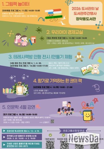 뉴스다 최광묵 기자 | 남양주시는 ‘2026년 도서관의 날·도서관주간’을 맞아 정약용도서관에서 4월 한 달간 전시와 체험, 강연 등 다양한 독서문화 프로그램을 운영한다고 18일 밝혔다.