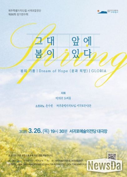 ‘그대 앞에 봄이 있다’라는 부제로 열리는 이번 정기연주회는 도립서귀포합창단의 2026년도 첫 정기연주회로, ‘봄의 기쁨’, ‘꿈과 희망’, ‘글로리아’ 세 개의 주제로 구성되어 봄의 아름다움을 풍성한 합창으로 그려낸다.
