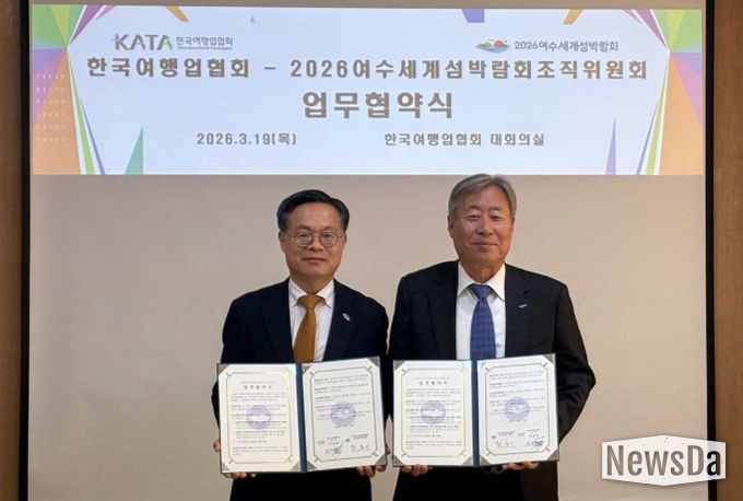 뉴스다 최광묵 기자 | 세계 최초로 ‘섬’을 주제로 열리는 2026여수세계섬박람회의 성공 개최와 관람객 유치 확대를 위해 2026여수세계섬박람회 조직위원회와 한국여행업협회가 손을 맞잡았다.