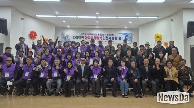 뉴스다 최광묵 기자 | 2026년 3월 19일, 여주시 세종대왕면 주민자치위원회와 인천시 남동구 논현1동 주민자치회가 자매결연 협약식을 체결했다. 협약식은 김희수 세종대왕면장과 이인희 논현1동장, 두 지역의 주민자치위원과 주민자치회원 등 총 50여 명이 함께한 가운데 열렸다.