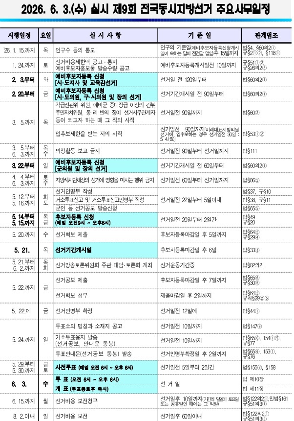 ▲제9회 전국동시지방선거 주요사무일정(자료출처 = 중앙선거관리위원회)