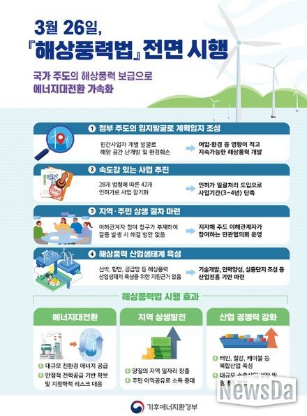 뉴스다 최광묵 기자 | ■ 3월 26일, 「해상풍력법」 전면 시행