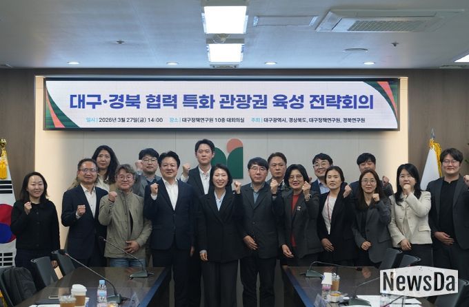 뉴스다 최광묵 기자 | 대구광역시와 경상북도는 3월 27일 오후 2시, 대구정책연구원 대회의실에서 양 시·도 관광부서와 연구원이 참여한 가운데 ‘대구·경북 협력 특화 관광권 육성을 위한 전략회의’를 개최했다.
